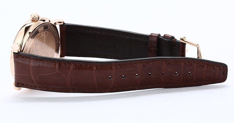 The IWC Portofino embodies elegant and simplistic dress watch design in the form of a 40mm waterproof case crafted from gold and topped with a silver-plated dial. The case is paired with a genuine brown alligator leather bracelet, which perfectly complements the gold sheen of the case. Collectors who appreciate a subtle dial will immediately gravitate towards the Portofino, which boasts a dial topped with sleek indices and central hands with hacking seconds. A date is also present on the dial at 3 o'clock. The men's reference IW356504 is powered by a 25-jewel calibre 35111 self-winding movement that beats at a rate of 28,800 bph and offers a 42-hour power reserve.