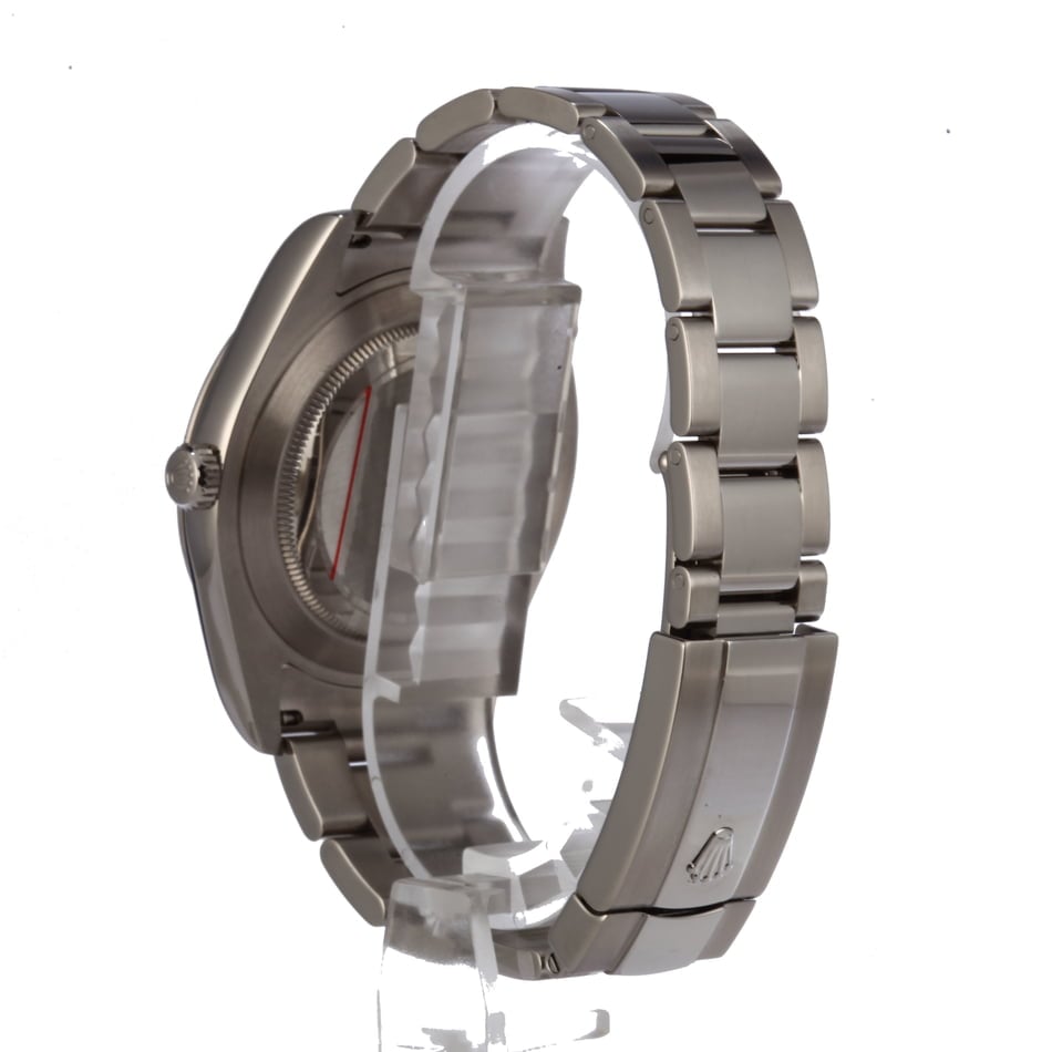 The larger Datejust II with a 41mm case was introduced in 2009. At the time, it was the first Datejust to feature a case that was larger than 36mm in diameter, making it an instant success among modern collectors. The ref. 116300 is one of the most popular variants of the Datejust II as it boasts an all-steel finish crafted from 904L-grade Oystersteel. Its feature set is sleek and almost sporty in design with a smooth bezel, a three-link Oyster bracelet, and a silver dial topped with fully-lumed baton hour markers. A newer calibre 3136 movement beats within the case and boasts self-winding and a Paramagnetic blue Parachrom hairspring. A Twinlock screw-down crown with two sealed zones protects the movement from depths of up to 100 meters, making the Datejust II an ideal companion for whatever your day brings.