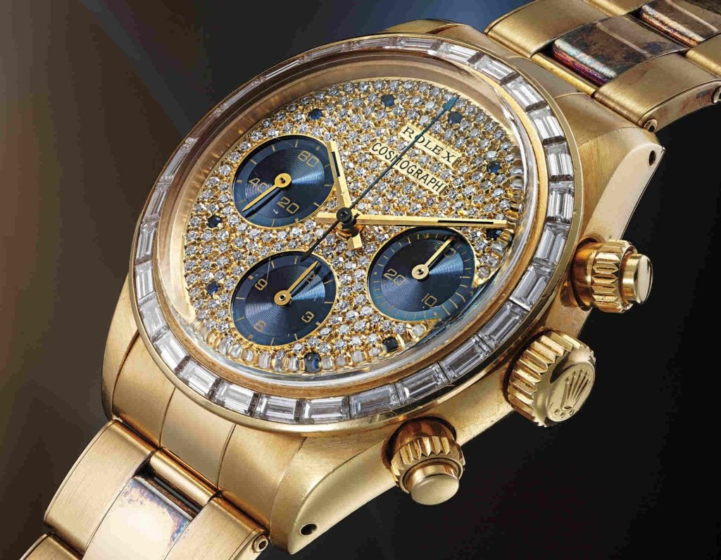 Industry experts believe no more than 10 examples of the 6270 were ever made, based on the iconic Daytona 6263. Crafted in yellow gold, it features a baguette diamond-set bezel and lugs, along with a striking pavé diamond-set dial accented by sapphire hour markers and gold baton hands, and is often said to be the most expensive Daytona ever made. Jay-Z made headlines when he wore a $4 Million diamond Rolex 6270 to an A-list party in the Hamptons last year.